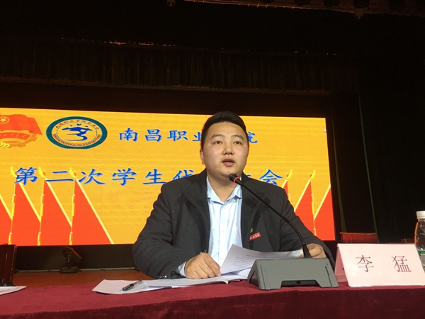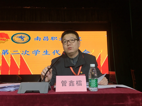随后,我院学生会执行主席张帅代表南昌职业学院学生联合会第一届委员会向大会作了题为《凝心聚力 继往开来 全面助力实现学院发展升级的“南职梦”》的工作报告,他简明清晰地总结了我院过去几年学生会的工作成果,向大家阐述了在我院师生共同努力下所获得的优秀成绩,同时他表示,新形势下我院学生会工作仍需努力的方向,作为南职学子,大家要通力配合,携手共进,为学院的各项工作贡献力量,为学院的发展升级贡献力量!