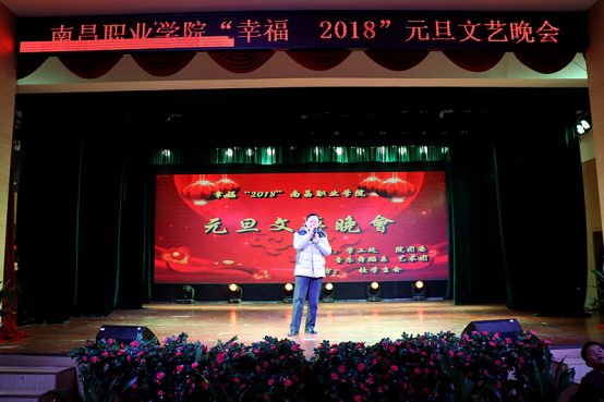 晚会开始前,学院执行院长高益庆作了热情洋溢的讲话。他首先代表南昌职业学院表达了对全院师生的新年祝福;接着,他带着大家回顾总结了学院一年来在基础建设、教学科研、人才引进、学生工作等方面所取的显著成绩,并展望了学院2018年的中心工作和重点工作;并宣布本次晚会正式开幕。