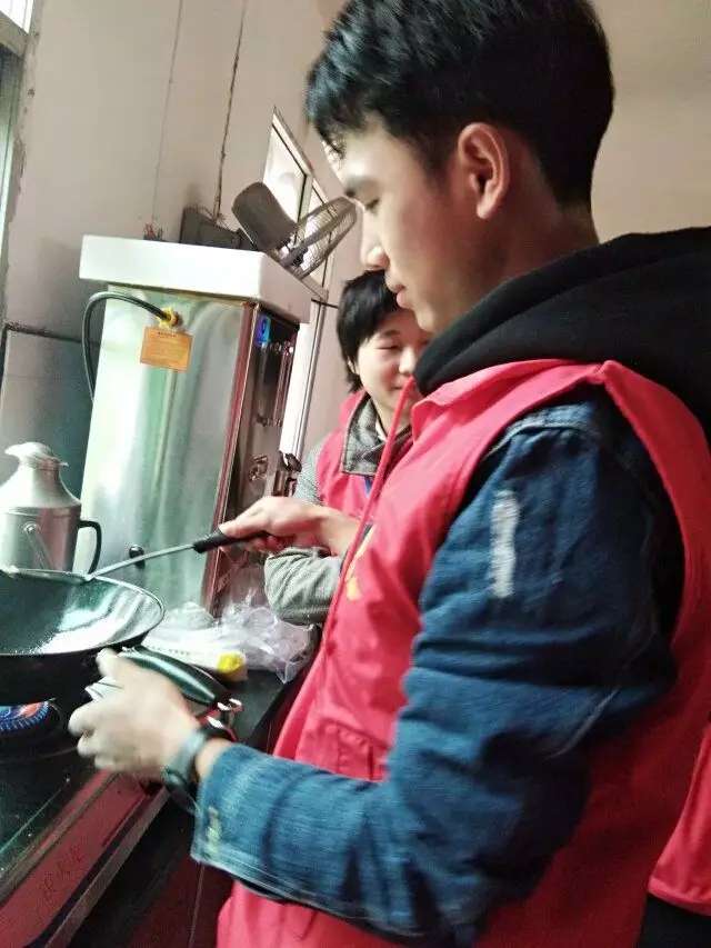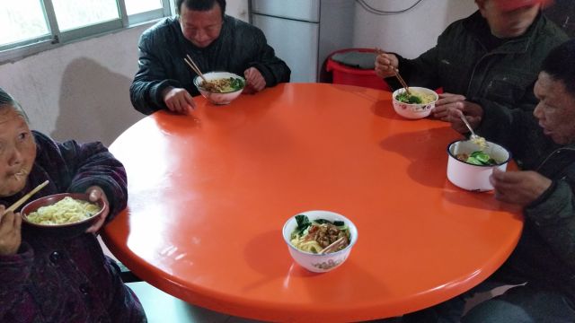 转眼间爱心面条做好了,志愿者们把老人们一个个带到食堂,让他们吃上热腾腾的午餐!老人们吃着午餐脸上的笑容也变得越来越幸福了,顷刻间笑便像种子般传播蔓延在整个敬老院。