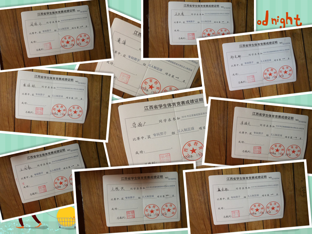 南昌职业学院足球队由郑祯和刘安祥老师带队,前往江西师范大学,参加由江西省教育局、体育局联合主办的“2018年江西省校园足球大学生五人制足球”比赛,并在专科组比赛中荣获冠军!