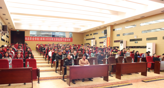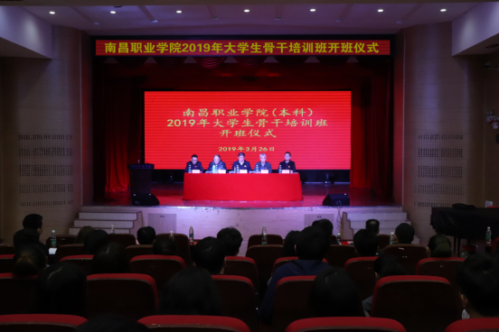 本网讯 党委宣传部赵莉 报道 3月26日下午,南昌职业学院(本科)第二期大学生骨干培训班开班仪式在音乐报告厅举行。学院党委副书记、院长周金堂教授,学院党委副书记、纪委书记彭祖雄应邀出席,学工处、团委负责人,各系团总支书记及学工干事,与此次参加培训的110位大骨班学员一同参加了开班仪式。仪式由学院副院长杨永东主持。
