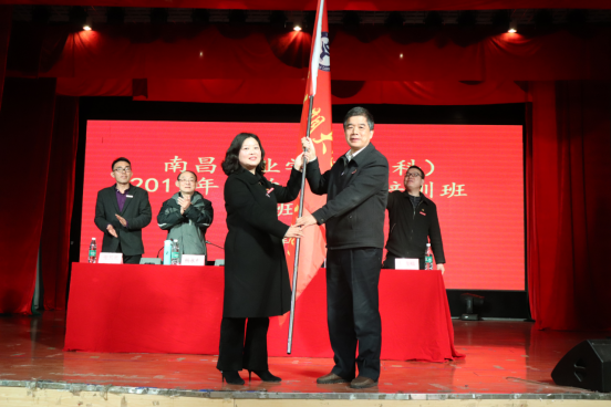院党委副书记、院长周金堂教授为第二期大学生骨干培训班授旗