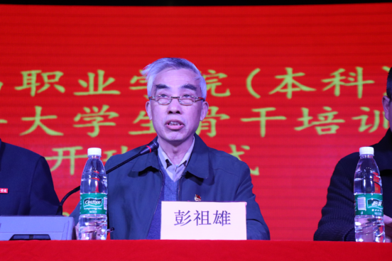 开班仪式在全场起立高唱国歌之后拉开帷幕。院党委副书记、纪委书记彭祖雄同志首先代表学院党委致辞,他对全体学员提出了三点希望:一是要充分认识“青年马克思主义者培养工程”的重大意义;二是要坚定共产主义远大理想和中国特色社会主义共同理想;三是要始终做习近平新时代中国特色社会主义思想的坚定信仰者和忠诚实践者。他勉励同学们要努力成为中国特色社会主义事业的合格建设者和可靠接班人,要做对党忠诚、信仰坚定、敢于担当的青年学子,做德才兼备、全面发展、勇于奋进的时代青年。