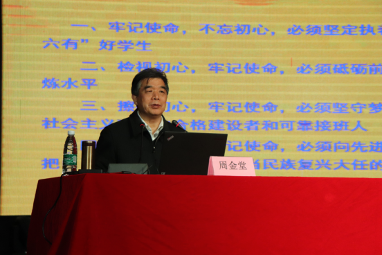 开班仪式结束后,学院院长周金堂教授为全体大骨班学员讲授了一堂以“不忘初心、牢记使命——努力做一个能担当民族复兴大任的时代新人”的主题讲座,以此正式拉开第二期大学生骨干培训班的序幕。在讲座中,周金堂教授通过讲述国家奖学金获奖学生的先进事迹和成长历程,积极倡导当代大学生不管面对什么样的人生境遇,都应该不忘初心、敢于追梦;不负青春、顽强拼搏,用自己的实际行动去践行关于争做“六有大学生”的具体要求,为中国特色社会主义伟大事业贡献出自己的一份力量。