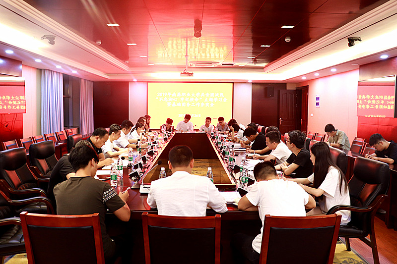 6月26日,校团委在办公楼308会议室,组织召开2019年共青团战线“不忘初心 牢记使命”主题学习会暨基础团务工作夯实会,党委学工部副部长、校团委书记、学生社团党支部书记李猛、各系团总支书记、学生副书记、学生会主席参加会议。