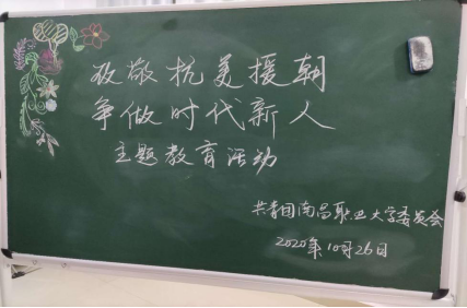 本网讯 团委战鸽 报道 为贯彻落实团中央、省委办公厅有关通知精神,在广大青少年中深入宣传抗美援朝战争的光辉历程和伟大胜利,广泛开展爱国主义教育和革命英雄主义教育,大力弘扬伟大的抗美援朝精神和民族精神,我校团委于10月26日晚19:30在团委办公室420进行“致敬抗美援朝·争做时代新人”为主题的座谈会,并对后续主题活动进行安排。