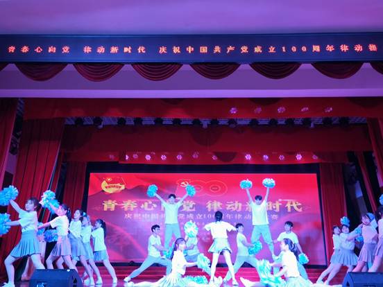 本网讯4月29日 崔晓娟报道 为庆祝中国共产党百年华诞,深入贯彻落实习近平总书记在党史学习教育动员大会上的重要讲话精神,积极推进党史学习教育。2021年4月25日——29日,我校在校足球场举办了以“青春心向党,律动新时代”为主题律动操大赛。