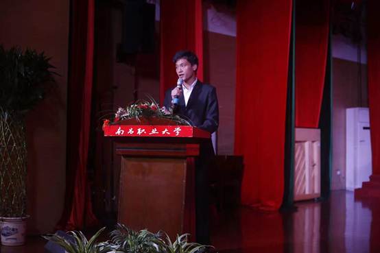 校评委代表、最佳辩手张俊斌同学希望学弟学妹们能在比赛中展现南职大学子的风姿,学会与人沟通锐意进取。然后他谨代表全体评委宣誓,保持比赛评分的公正态度,保障比赛过程的公开透明,保证比赛结果的公平无误。