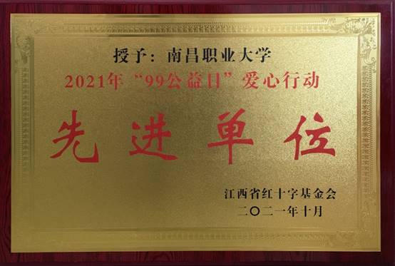 本网讯 校团委 郭晶晶 报道 我校荣获江西省红十字基金会授予的2021年“99公益日”爱心行动先进单位称号。多年来,我校坚持每年组织全校师生参与“99公益日”捐款活动,积极践行社会责任,展现文明风貌。