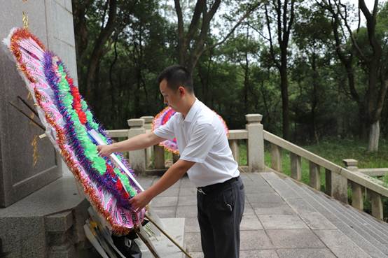 全体人员怀着无比崇敬的心情向方志敏烈士墓敬献了花篮敬献花圈。邓超同志整理缎带和挽联,带领全体人员向烈士铜像行鞠躬礼并肃立默哀1分钟,表达对方志敏烈士的深切哀思和崇高敬意。
