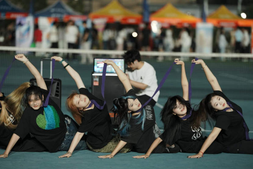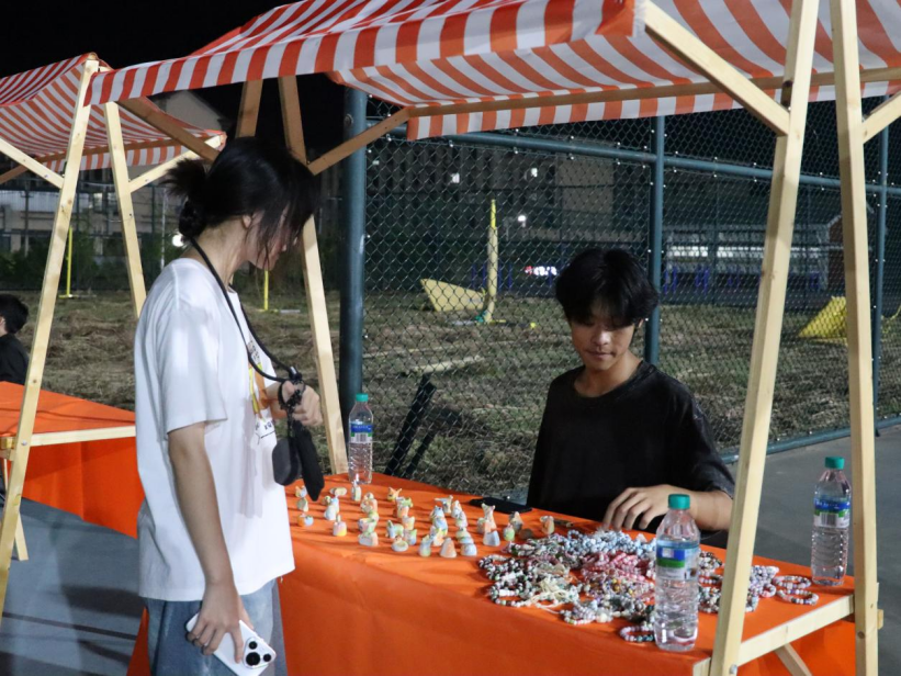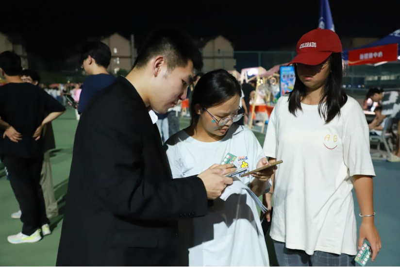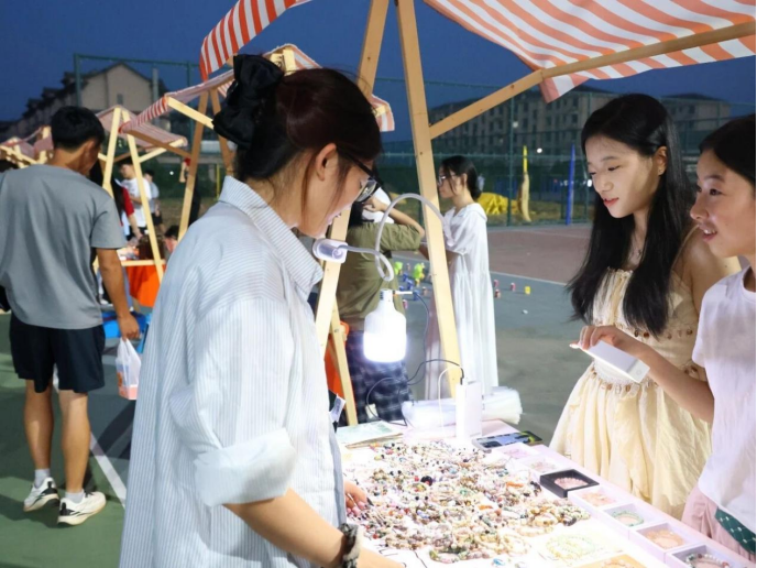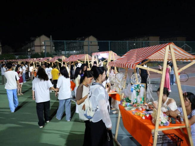 除了精彩的社团展示,校园集市更让这场青春盛宴添了几分烟火气。集市摊位上,针织挂件、手工饰品等文创好物满满当当,同学们穿梭其间,按需挑选心仪物件,在交流互动中体验别样的校园购物乐趣。夜幕降临,社团文艺汇演接力登场,舞蹈、歌唱等精彩节目轮番上演,灯光与掌声交织,为现场师生带来一场视听俱佳的文化盛宴。
